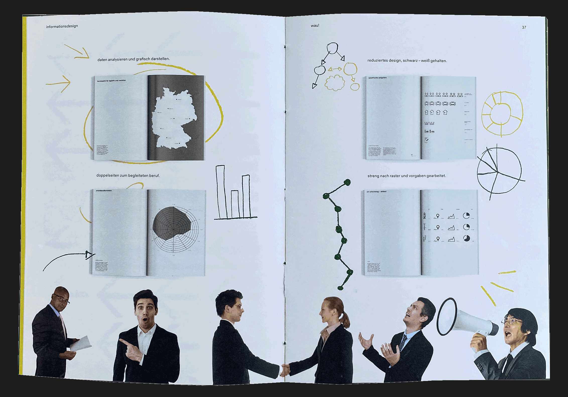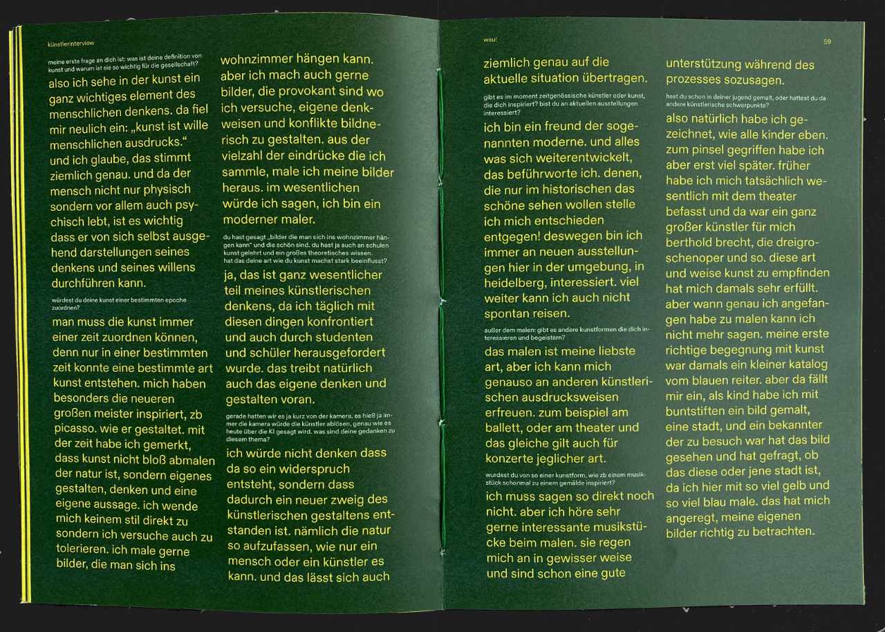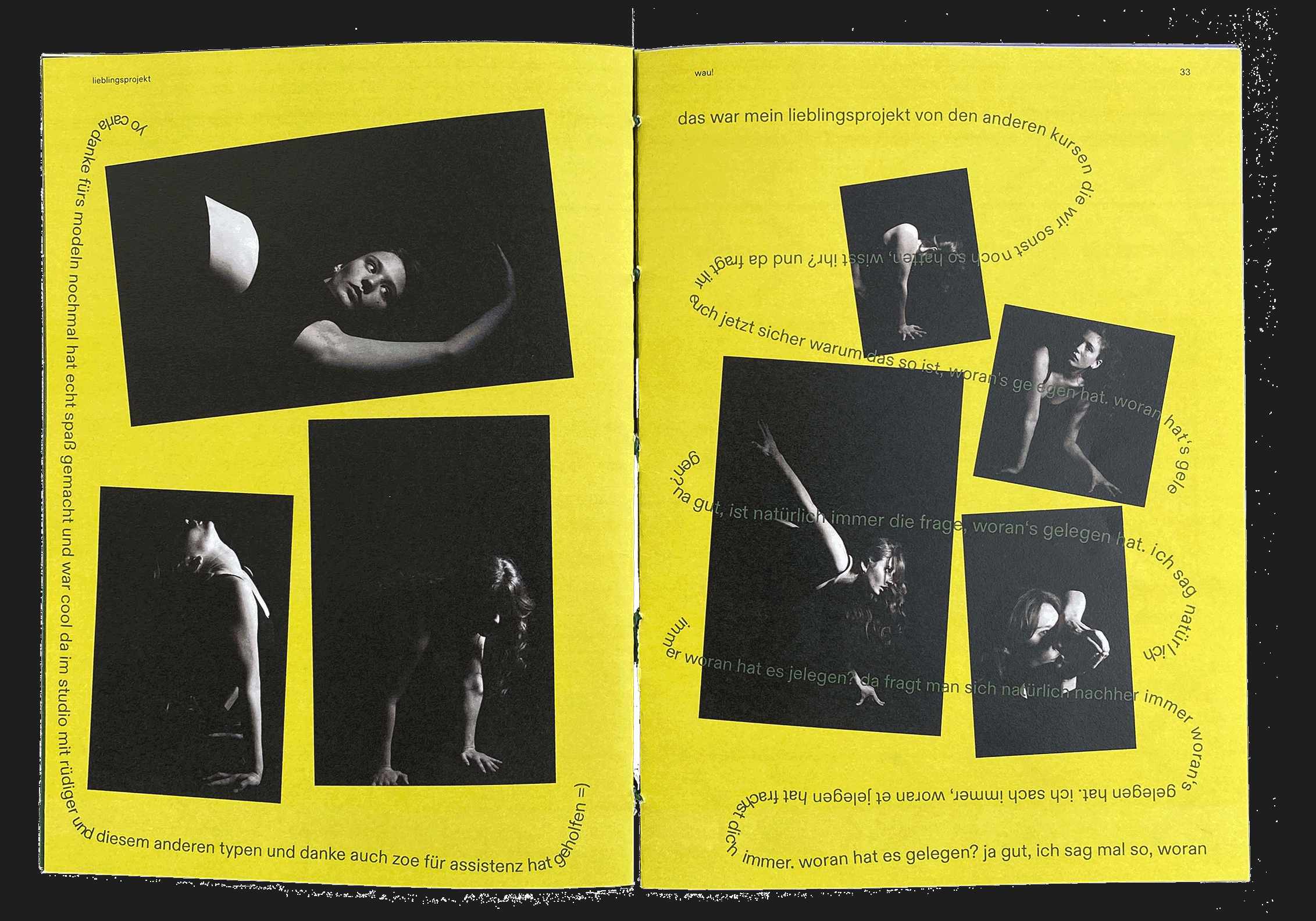 Bei diesem Magazin war unsere Aufgabe, uns freizumachen von den Gestaltungsrichtlinien, die wir das Semester über gelernt haben, und einfach kreativ zu sein. Auch hier hatten wir eine Liste mit Dingen, die im Magazin enthalten sein mussten, wie z.B. die Aufgaben aus den anderen Kursen des Semesters, eine Vorstellungsseite und so weiter. Wir hatten auch nicht viel Zeit und mussten wirklich schnell machen und das noch ganz am Ende des Semesters. Das war eines der spaßigsten Projekte bisher.